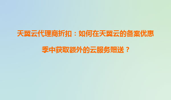 2025-10-19天翼云代理商折扣:如何在天翼云的備案優(yōu)惠季中獲取額外的云服務(wù)贈送? 一、天翼云備案優(yōu)惠季是什么? 天翼云作為中國電信旗下的云計算服務(wù)品牌,每年都會推出...