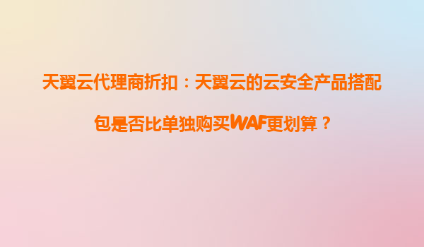 2025-10-17天翼云代理商折扣:云安全產(chǎn)品搭配包比單獨(dú)購買WAF更劃算? 一、天翼云安全產(chǎn)品概述 天翼云作為中國電信旗下的云計(jì)算品牌,提供全面的云安全解決方案,包括Web...