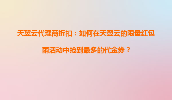 4008-020-360 天翼云限量紅包雨活動攻略:高效搶券技巧與平臺優(yōu)勢解析 一、活動前的充分準(zhǔn)備 參與天翼云限量紅包雨活動前,需提前完成賬號實(shí)名認(rèn)證并綁定支付方式,確保賬戶狀態(tài)正常。建議關(guān)注天翼云官網(wǎng)及官方公眾號,...