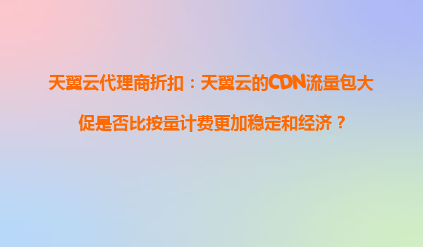 2025-10-17天翼云代理商折扣:CDN流量包大促是否比按量計(jì)費(fèi)更穩(wěn)定經(jīng)濟(jì)? 引言 在數(shù)字化轉(zhuǎn)型浪潮中,內(nèi)容分發(fā)網(wǎng)絡(luò)(CDN)已成為企業(yè)提升用戶體驗(yàn)的關(guān)鍵技術(shù)。天翼云作為國內(nèi)豬?marksлите云服務(wù)頭部品...