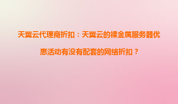 2025-10-18天翼云裸金屬服務(wù)器優(yōu)惠活動:配套網(wǎng)絡(luò)折扣解析 裸金屬服務(wù)器優(yōu)惠活動概覽 天翼云作為中國電信旗下的云計(jì)算服務(wù)商,近期針對企業(yè)用戶推出了裸金屬服務(wù)器優(yōu)惠活動。該活動不僅提供高性能的裸金屬服務(wù)器折扣...