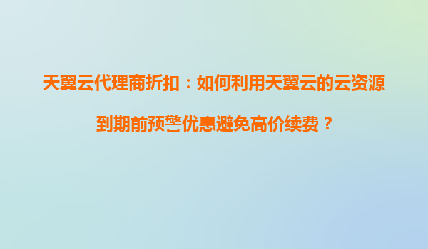 2025-10-17天翼云代理商折扣:如何利用天翼云的云資源到期前預警優(yōu)惠避免高價續(xù)費? 一、天翼云資源到期預警的痛點與機會 許多企業(yè)在使用天翼云時,因忽視資源到期時間而...