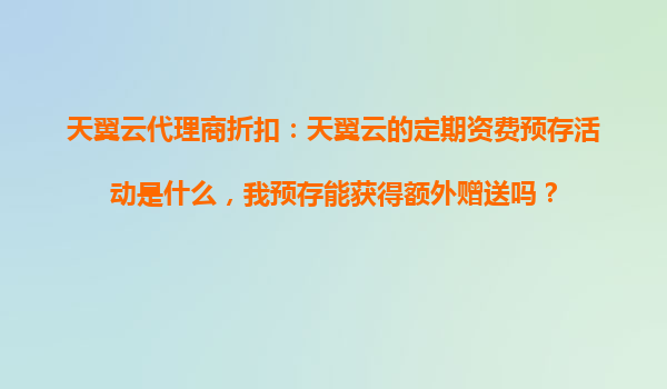 2025-10-17天翼云代理商折扣解析:定期資費預存活動與額外贈送詳解 一、天翼云定期資費預存活動是什么? 天翼云作為中國電信旗下的云計算服務品牌,為企業(yè)和個人用戶提供穩(wěn)定、安全、高效的云服務。為了...