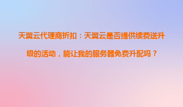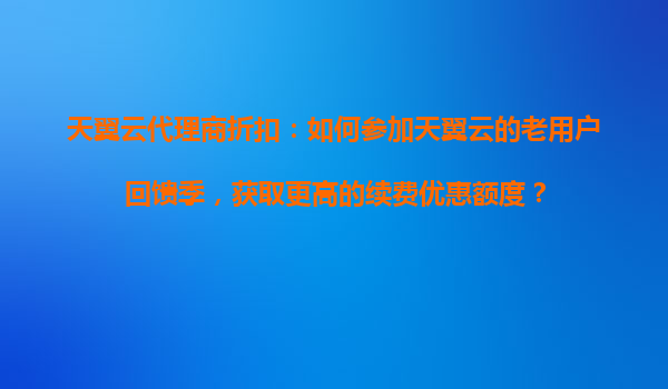2025-10-17天翼云代理商折扣:如何參加天翼云老用戶回饋季,獲取更高的續(xù)費優(yōu)惠額度? 一、天翼云老用戶回饋季活動簡介 天翼云作為中國電信旗下的云計算服務品牌,長期致...