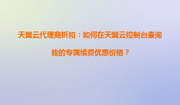 2025-10-17天翼云代理商折扣:如何在天翼云控制臺查詢我的專屬續(xù)費優(yōu)惠價格? 一、天翼云與代理商的雙重優(yōu)勢 天翼云作為中國電信旗下的云計算服務品牌,憑借強大的基礎設施和穩(wěn)定的網(wǎng)絡資源,為企業(yè)用戶提供了...