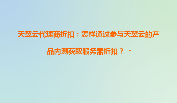 2025-04-20如何通過參與天翼云產(chǎn)品內(nèi)測獲取服務(wù)器折扣? 隨著云計(jì)算市場競爭的日益激烈,天翼云憑借中國電信強(qiáng)大的資源整合能力與技術(shù)創(chuàng)新,逐漸成為企業(yè)及開發(fā)者上云的重要選擇。對于希望降低成本的用戶而言...
