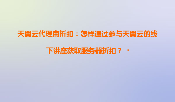 2025-04-19如何通過(guò)參與天翼云線下講座獲取服務(wù)器折扣? 一、天翼云與代理商的協(xié)同優(yōu)勢(shì) 作為中國(guó)電信旗下的云計(jì)算服務(wù)品牌,天翼云憑借其安全可靠的基礎(chǔ)設(shè)施和覆蓋全國(guó)的云資源布局,已成為企業(yè)數(shù)字化轉(zhuǎn)型的首選平臺(tái)...