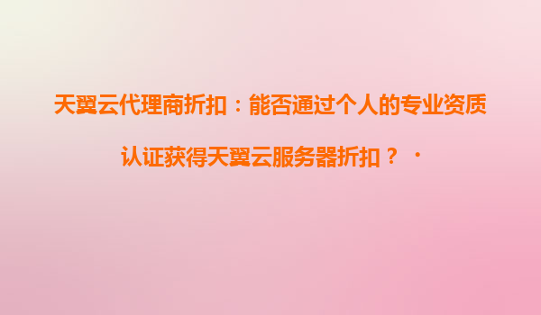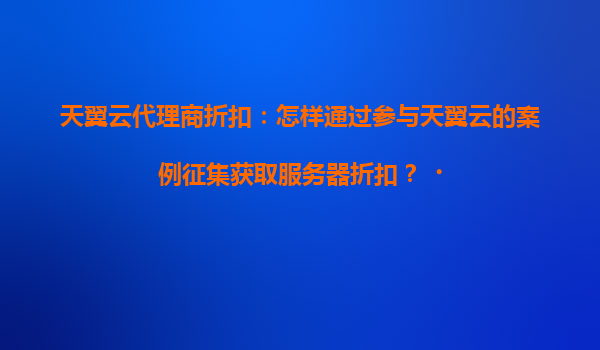 2025-04-19一、企業(yè)周年慶典期間申請(qǐng)?zhí)煲碓品?wù)器折扣的可行性分析 在天翼云的合作體系中,代理商作為連接企業(yè)與云服務(wù)的重要橋梁,通常會(huì)根據(jù)客戶需求提供定制化資源方案。針對(duì)企業(yè)周年慶典這類特殊時(shí)間節(jié)點(diǎn),代理商可通...