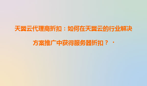 2025-04-19天翼云代理商折扣:如何在行業(yè)解決方案推廣中獲得服務(wù)器折扣? 一、天翼云的核心優(yōu)勢(shì) 在數(shù)字化轉(zhuǎn)型浪潮中,天翼云憑借其獨(dú)特的技術(shù)和服務(wù)能力,成為企業(yè)上云的首選平臺(tái)。以下是其...
