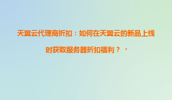 2025-04-19天翼云代理商折扣:如何在新品上線時獲取服務器折扣福利? 一、天翼云的核心優(yōu)勢解析 1.1技術實力與資源覆蓋 天翼云作為中國電信旗下云計算品牌,依托運營商級基礎設施,擁有全球覆蓋的數(shù)據(jù)中心網(wǎng)...