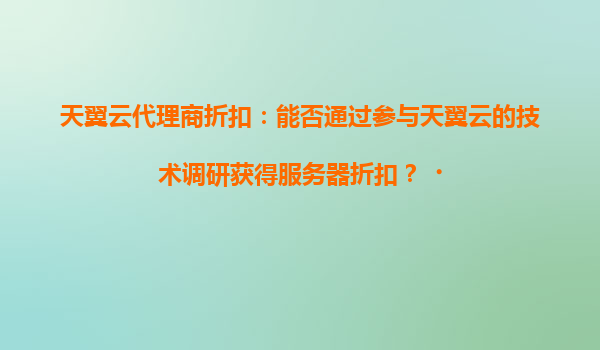 2025-04-18天翼云代理商折扣:參與技術調(diào)研能否獲得服務器優(yōu)惠? 一、天翼云的核心優(yōu)勢解析 作為中國電信旗下的云計算服務品牌,天翼云憑借以下優(yōu)勢穩(wěn)居行業(yè)第一梯隊: ...