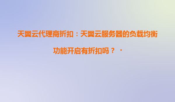 2025-04-19天翼云負載均衡功能的技術優(yōu)勢與代理商折扣政策 天翼云負載均衡的核心價值 作為中國電信旗下云計算品牌,天翼云負載均衡服務通過智能流量分發(fā)技術,為多臺云服務器提供高效可靠的流量調(diào)度能...