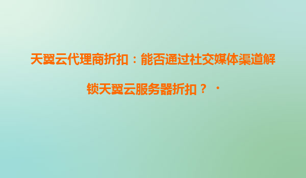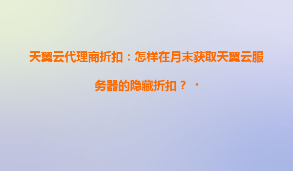 2025-04-16如何在月末獲取天翼云服務(wù)器的隱藏折扣? 天翼云作為國內(nèi)領(lǐng)先的云計算服務(wù)商,憑借其穩(wěn)定、安全、高效的云服務(wù)能力,深受企業(yè)和開發(fā)者信賴。而通過天翼云代理商合作,用戶不僅能享受官方服務(wù),還能...