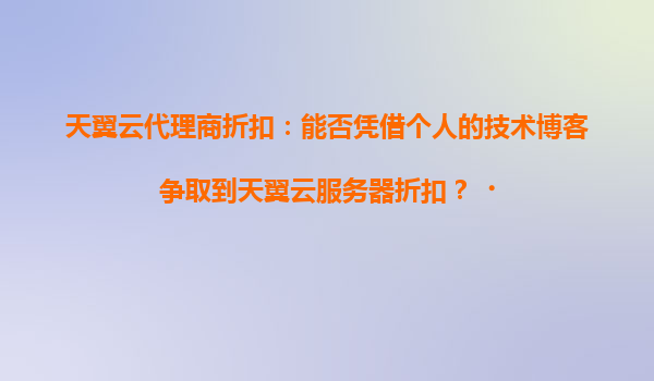 2025-04-17能否憑借個人的技術(shù)博客爭取到天翼云服務(wù)器折扣? 一、天翼云的核心優(yōu)勢分析 在探討如何通過技術(shù)博客爭取折扣前,需先理解天翼云的核心競爭力。天翼云作為中國電信旗下品牌,具備以下獨特優(yōu)勢: ...