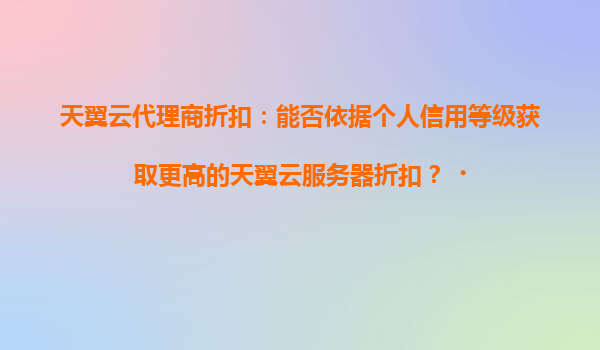4008-020-360 天翼云代理商折扣政策解析:信用等級如何助力用戶享受更多優(yōu)惠 天翼云的核心優(yōu)勢與行業(yè)地位 作為中國電信旗下的云計算品牌,天翼云依托運營商級資源稟賦,構(gòu)建了覆蓋全國的分布式云基礎(chǔ)...