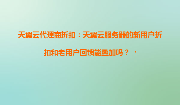 2025-04-17天翼云代理商折扣政策解析:新老用戶優(yōu)惠能否疊加? 隨著云計算市場競爭日益激烈,天翼云憑借其技術(shù)實力和優(yōu)惠政策持續(xù)吸引企業(yè)用戶。對于用戶普遍關(guān)心的"新用戶折扣與老用戶回饋能否疊加"問題,本...