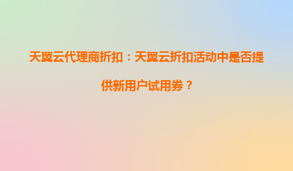 2025-10-15天翼云代理商折扣:新用戶試用券政策與平臺(tái)優(yōu)勢(shì)解析 一、天翼云新用戶試用券活動(dòng)介紹 在天翼云的代理商折扣活動(dòng)中,新用戶試用券是常見的推廣方式之一。天翼云...