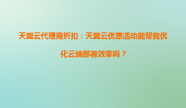 4008-020-360 天翼云代理商折扣:天翼云優(yōu)惠活動(dòng)如何優(yōu)化您的云端部署效率? 引言 在數(shù)字化轉(zhuǎn)型的浪潮中,云計(jì)算已成為企業(yè)提升效率、降低成本的核心工具。作為國內(nèi)領(lǐng)先的云服務(wù)提供商,天翼云憑借其強(qiáng)大的基礎(chǔ)設(shè)施、豐...