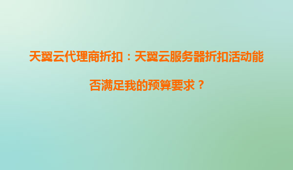 2025-04-13天翼云代理商折扣:怎樣通過天翼云服務(wù)器折扣活動優(yōu)化預(yù)算分配? 一、天翼云的核心優(yōu)勢與預(yù)算優(yōu)化的關(guān)聯(lián)性 天翼云作為中國電信旗下的云計(jì)算服務(wù)品牌,憑借其技術(shù)能力與資源優(yōu)勢,為企業(yè)提供了高性價(jià)比...