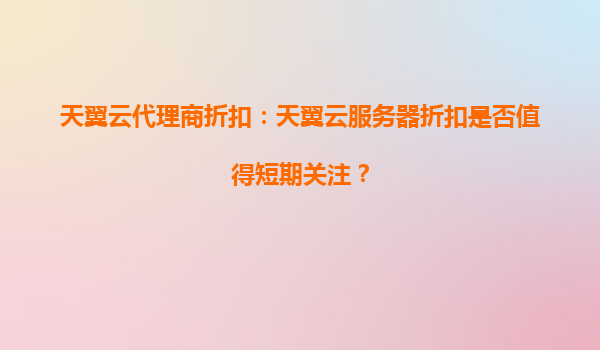 2025-04-08天翼云代理商折扣的短期價值分析 在數(shù)字化轉(zhuǎn)型加速的背景下,企業(yè)對云計算資源的需求日益增長。作為中國電信旗下的云計算品牌,天翼云憑借其獨特優(yōu)勢成為眾多企業(yè)的選擇。近期,天翼云代理商推出的折扣政策引發(fā)...