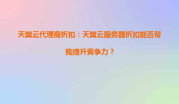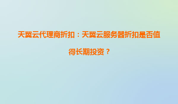 2025-04-06天翼云代理商折扣:天翼云服務(wù)器是否值得長期投資? 隨著企業(yè)數(shù)字化轉(zhuǎn)型的加速,云計(jì)算已成為支撐業(yè)務(wù)發(fā)展的核心基礎(chǔ)設(shè)施。在眾多云服務(wù)商中,天翼云憑借其獨(dú)特的資源和技術(shù)優(yōu)勢脫穎而出,而通過天...