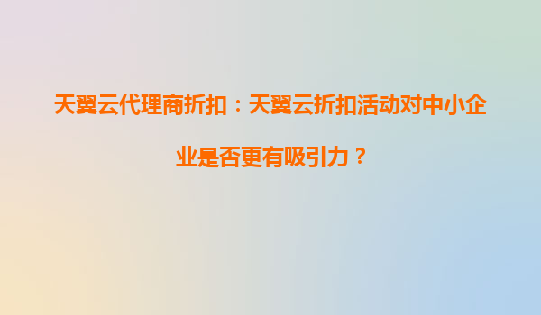 2025-10-14天翼云代理商折扣:天翼云折扣活動(dòng)對(duì)中小企業(yè)是否更有吸引力? 一、天翼云的核心優(yōu)勢(shì)分析 天翼云作為中國(guó)電信旗下云計(jì)算品牌,憑借央企背景和遍布全國(guó)的IDC資源優(yōu)勢(shì),在穩(wěn)定性、安全性及本地化服務(wù)方...