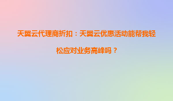 2025-10-15天翼云代理商折扣:天翼云優(yōu)惠活動(dòng)能幫我輕松應(yīng)對(duì)業(yè)務(wù)高峰嗎? 在當(dāng)今數(shù)字化時(shí)代,企業(yè)業(yè)務(wù)的快速發(fā)展離不開穩(wěn)定、高效、安全的云服務(wù)支持。尤其是面對(duì)業(yè)務(wù)高峰,如何確保系統(tǒng)的穩(wěn)定性和性能,成為每個(gè)企業(yè)關(guān)注...