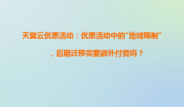 2025-04-04天翼云優(yōu)惠活動(dòng)中的“地域限制”解析與后期遷移成本說明 一、地域限制的含義與業(yè)務(wù)影響 在天翼云的各類優(yōu)惠活動(dòng)中,“地域限制”通常指用戶購買的云資源(如服務(wù)器、存儲(chǔ)等)需綁定特定區(qū)域節(jié)...