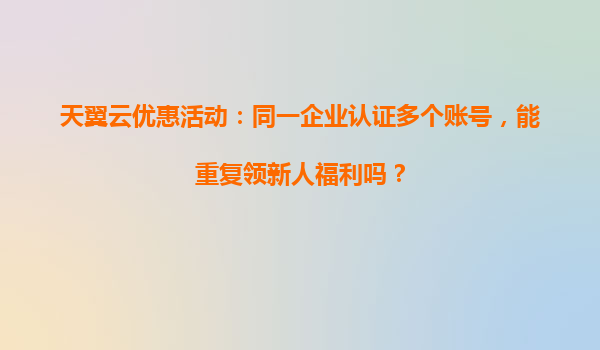2025-04-04天翼云優(yōu)惠活動(dòng)解析:企業(yè)認(rèn)證多賬號(hào)能否重復(fù)領(lǐng)取新人福利? 隨著數(shù)字化轉(zhuǎn)型的加速,越來越多的企業(yè)選擇云計(jì)算服務(wù)來提升業(yè)務(wù)效率。天翼云作為國內(nèi)領(lǐng)先的云服務(wù)提供商,憑借其技術(shù)實(shí)力和安全能力,成為眾多...
