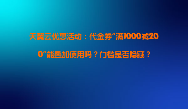 2025-04-03天翼云“滿1000減200”代金券活動(dòng)解析:優(yōu)惠能否疊加?隱藏門檻是否存在? 一、活動(dòng)規(guī)則深度解讀 近期天翼云推出的“滿1000減200”代金券活動(dòng)引發(fā)廣泛關(guān)注,用戶最關(guān)心的兩個(gè)核心問題在于: ...