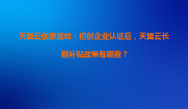 2025-04-04天翼云初創(chuàng)企業(yè)認(rèn)證長期補(bǔ)貼政策解析 一、天翼云初創(chuàng)企業(yè)認(rèn)證核心權(quán)益 通過資質(zhì)審核的初創(chuàng)企業(yè)可享受為期3年的梯度化資源扶持: 首年資源包:最高50萬元等值云產(chǎn)品組合(含計(jì)算/存儲(chǔ)/數(shù)據(jù)...
