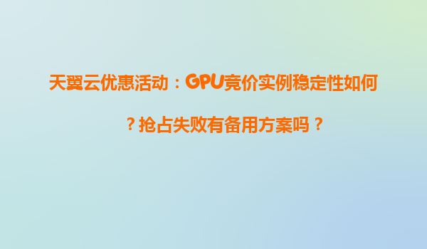 4008-020-360 天翼云GPU競(jìng)價(jià)實(shí)例穩(wěn)定性與搶占失敗備用方案解析 一、GPU競(jìng)價(jià)實(shí)例的核心優(yōu)勢(shì)與穩(wěn)定性分析 天翼云GPU競(jìng)價(jià)實(shí)例依托于彈性計(jì)算資源池,通過動(dòng)態(tài)分配閑置GPU資源,為用戶提供高性價(jià)比的算力服務(wù)。其穩(wěn)定性表現(xiàn)...