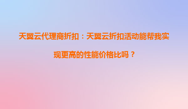 4008-020-360 天翼云代理商折扣:天翼云折扣活動(dòng)能幫我實(shí)現(xiàn)更高的性能價(jià)格比嗎? 一、天翼云的核心優(yōu)勢(shì)與市場競爭力 天翼云作為中國電信旗下的云計(jì)算品牌,憑借其央企背景和全國覆蓋的網(wǎng)絡(luò)基礎(chǔ)設(shè)施,在性能、安全性和穩(wěn)...