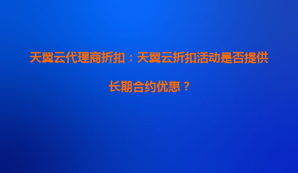 2025-10-13天翼云代理商折扣解析:長期合約優(yōu)惠與云服務(wù)優(yōu)勢(shì) 一、天翼云折扣活動(dòng)中的長期合約優(yōu)惠 天翼云作為中國電信旗下的云計(jì)算服務(wù)品牌,為促進(jìn)企業(yè)上云,常通過代理商渠道推出多樣化的折扣活...