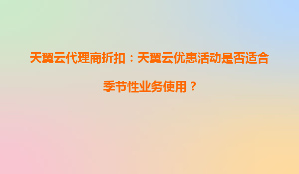 2025-10-13天翼云代理商折扣優(yōu)惠活動(dòng)解析 天翼云作為中國電信旗下的云計(jì)算服務(wù)品牌,憑借其強(qiáng)大的基礎(chǔ)設(shè)施和豐富的產(chǎn)品線,為企業(yè)用戶提供了穩(wěn)定、安全的云服務(wù)解決方案。近期推出的代理商折扣優(yōu)惠活動(dòng),尤其適合季節(jié)性業(yè)...