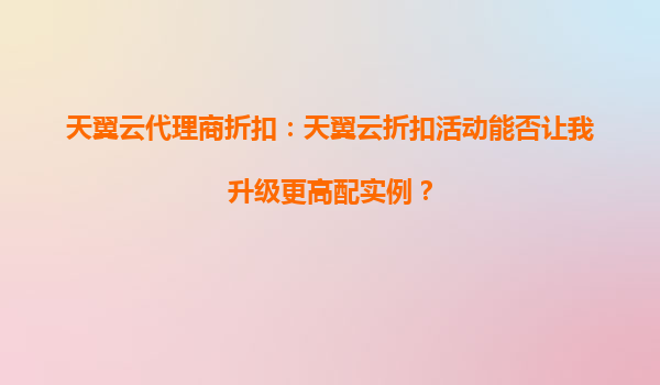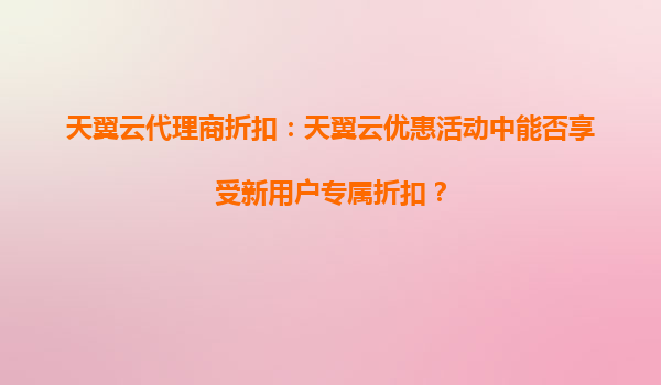 2025-10-12天翼云代理商折扣:新用戶專屬優(yōu)惠解析與天翼云優(yōu)勢 一、天翼云代理商折扣與新用戶專屬優(yōu)惠的關系 在天翼云的優(yōu)惠活動中,代理商折扣與新用戶專屬折扣通常是兩個獨立的優(yōu)惠體系。代理商折扣主要面向通過代...