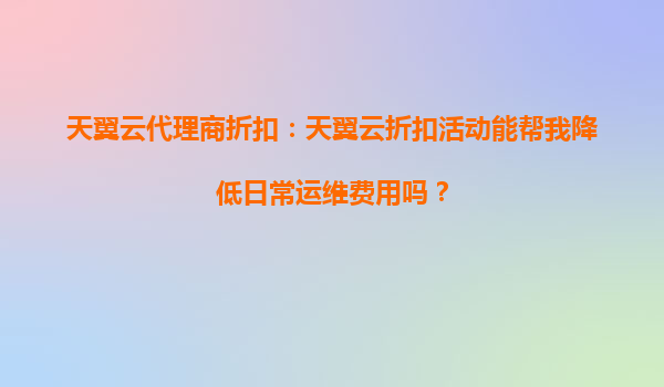4008-020-360 天翼云代理商折扣:如何通過折扣活動降低日常運維費用? 隨著云計算技術的普及,越來越多的企業(yè)開始將業(yè)務遷移至云端,以降低IT基礎設施的運維成本。然而,云服務的費用仍然是企業(yè)IT支出中的一大項。作為中國領...