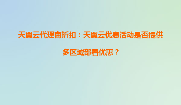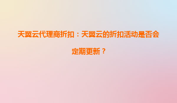 2025-10-11天翼云代理商折扣:天翼云的折扣活動是否會定期更新? 一、天翼云代理商折扣活動概述 天翼云作為中國電信旗下的云計算服務品牌,憑借其強大的基礎設施和技術實力,已成為國內(nèi)云計算市場...