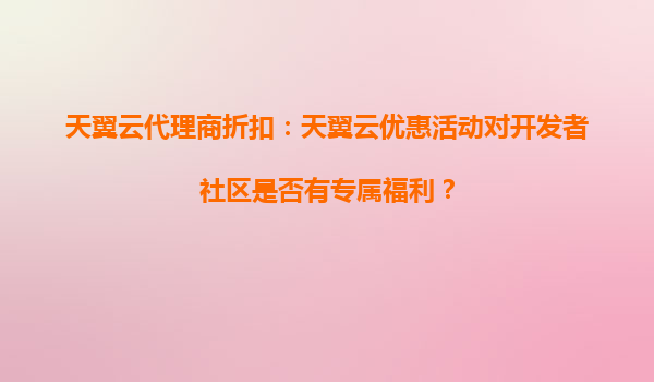 2025-10-11天翼云代理商折扣:開發(fā)者社區(qū)的專屬福利解析 天翼云的技術優(yōu)勢與開發(fā)者友好生態(tài) 作為中國電信旗下的云計算品牌,天翼云憑借央企背景和自主研發(fā)能力,構建了覆蓋IaaS、PaaS、SaaS的全棧云服務體系。其分布式云...