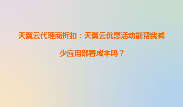 2025-10-11天翼云代理商折扣:如何通過天翼云優(yōu)惠活動降低應用部署成本? 一、天翼云的核心優(yōu)勢 天翼云作為中國電信旗下的云計算服務品牌,憑借其強大的基礎設施和本土化...