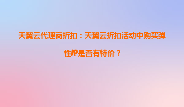 2025-10-10天翼云代理商折扣:彈性IP特價(jià)活動(dòng)解析與天翼云核心優(yōu)勢(shì) 一、天翼云彈性IP代理商折扣活動(dòng)詳解 在天翼云近期的代理商折扣活動(dòng)中,彈性IP資源確實(shí)推出了限時(shí)特價(jià)...