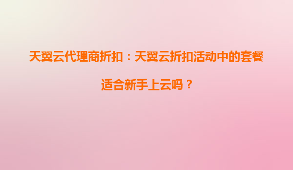 2025-10-10天翼云代理商折扣:天翼云折扣活動(dòng)中的套餐適合新手上云嗎? 一、天翼云的優(yōu)勢(shì)解析 隨著云計(jì)算技術(shù)的普及,越來(lái)越多的企業(yè)和個(gè)人開(kāi)始選擇云服務(wù)來(lái)滿足業(yè)務(wù)需求。天翼云作為中國(guó)電信旗下...