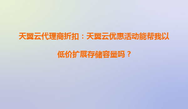 2025-10-10天翼云代理商折扣:天翼云優(yōu)惠活動(dòng)能幫我以低價(jià)擴(kuò)展存儲(chǔ)容量嗎? 一、天翼云的核心優(yōu)勢(shì) 天翼云作為中國(guó)電信旗下的云計(jì)算品牌,憑借其強(qiáng)大的基礎(chǔ)設(shè)施和豐富的行業(yè)經(jīng)驗(yàn),為用戶提供穩(wěn)定、安全、高效...