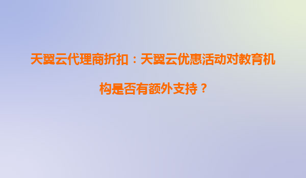2025-10-10天翼云代理商折扣:天翼云優(yōu)惠活動(dòng)對(duì)教育機(jī)構(gòu)是否有額外支持? 一、天翼云在教育行業(yè)的戰(zhàn)略布局 隨著數(shù)字化轉(zhuǎn)型的加速,教育行業(yè)對(duì)云計(jì)算的需求日益增長(zhǎng)。天翼...