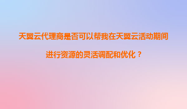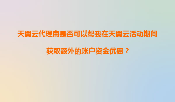 2025-11-07天翼云代理商是否可以幫我在天翼云活動(dòng)期間獲取額外的賬戶資金優(yōu)惠? 一、天翼云代理商在活動(dòng)中的角色與價(jià)值 天翼云作為中國(guó)電信旗下的云計(jì)算品牌,憑借其強(qiáng)大的基礎(chǔ)設(shè)施、穩(wěn)定的網(wǎng)絡(luò)服務(wù)和靈活的解決方案...