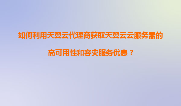 2025-11-07如何利用天翼云代理商獲取天翼云云服務(wù)器的高可用性和容災(zāi)服務(wù)優(yōu)惠? 一、引言:天翼云與企業(yè)數(shù)字化轉(zhuǎn)型 隨著數(shù)字化轉(zhuǎn)型加速,企業(yè)對(duì)云計(jì)算服務(wù)的需求日益增長(zhǎng),尤其在金融、醫(yī)療、政務(wù)等行業(yè),高可用性和容災(zāi)能力...