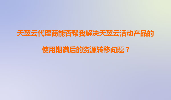 2025-11-07天翼云代理商如何協(xié)助解決活動(dòng)產(chǎn)品到期后的資源轉(zhuǎn)移問題 天翼云產(chǎn)品活動(dòng)的優(yōu)勢(shì)與價(jià)值 天翼云作為中國(guó)電信旗下云計(jì)算品牌,長(zhǎng)期推出各類優(yōu)惠活動(dòng)產(chǎn)品,如新用戶特惠、套餐升級(jí)折扣等。這些活動(dòng)產(chǎn)品通常具有...