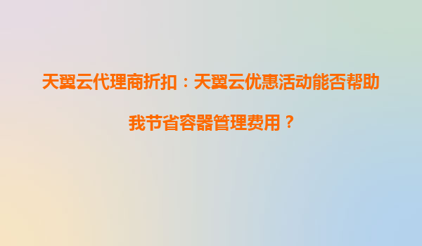 2025-10-07天翼云代理商折扣:天翼云優(yōu)惠活動能否幫助我節(jié)省容器管理費用? 一、天翼云代理商折扣的優(yōu)勢 天翼云作為中國電信旗下的云計算服務(wù)品牌,憑借其強大的基礎(chǔ)設(shè)施和穩(wěn)定的網(wǎng)絡(luò)服務(wù),為企業(yè)提供了多樣...