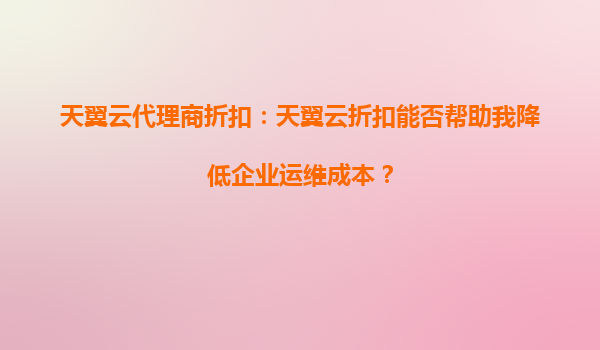 4008-020-360 天翼云代理商折扣:天翼云折扣能否幫助我降低企業(yè)運(yùn)維成本? 一、企業(yè)運(yùn)維成本的痛點(diǎn)與云計(jì)算的機(jī)遇 在數(shù)字化轉(zhuǎn)型浪潮下,企業(yè)IT運(yùn)維成本居高不下成為普遍難題。傳統(tǒng)自建機(jī)房的硬件采購...