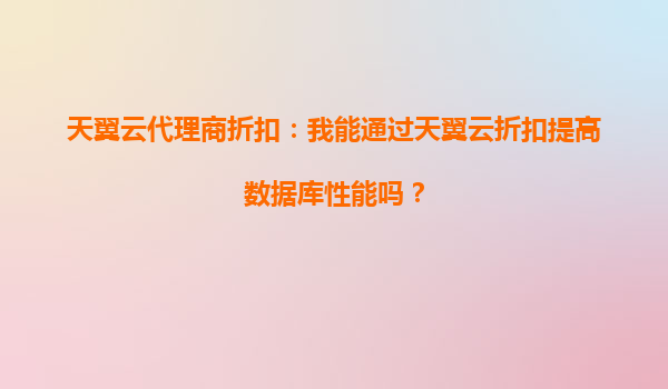 2025-10-07天翼云代理商折扣:通過折扣提升數(shù)據(jù)庫性能的可行性分析 一、天翼云代理商折扣概述 天翼云作為中國電信旗下的云計(jì)算服務(wù)提供商,憑借其強(qiáng)大的基礎(chǔ)設(shè)施和豐富的云服務(wù)產(chǎn)品,為企業(yè)用戶提供了高性能、高可靠...